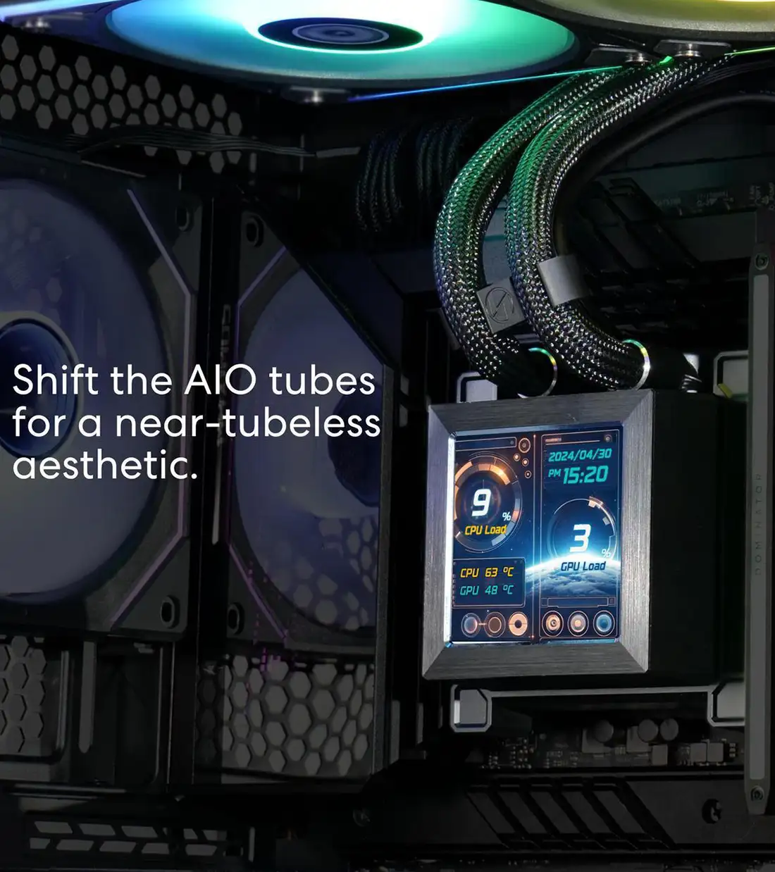 ویژگی متمایز کننده HydroShift LCD 360R Black، صفحه نمایش 2.88 اینچی IPS LCD با وضوح تصویر 480 × 480 پیکسل است. این نمایشگر با کیفیت بالا، امکان نمایش اطلاعات مفیدی از سیستم شما را فراهم میکند. شما میتوانید دمای پردازنده، متن دلخواه، زمان و افکتهای تصویری جذاب را بر روی این صفحه نمایش به نمایش درآورید و ظاهر سیستم خود را به طور کامل شخصیسازی کنید. قابلیت ذخیره اطلاعات نیز به شما اجازه میدهد تنظیمات دلخواه خود را برای نمایشگر ذخیره کنید.