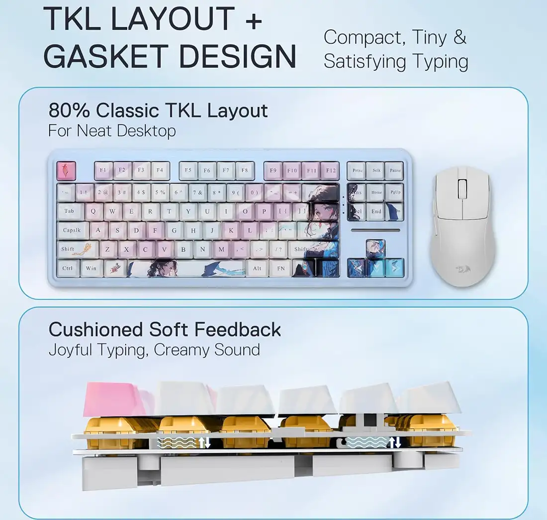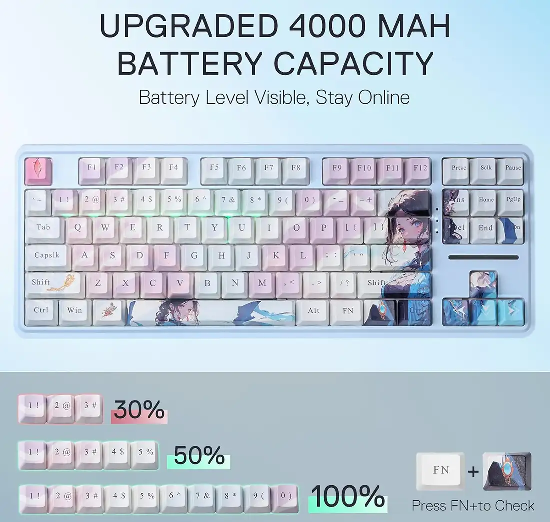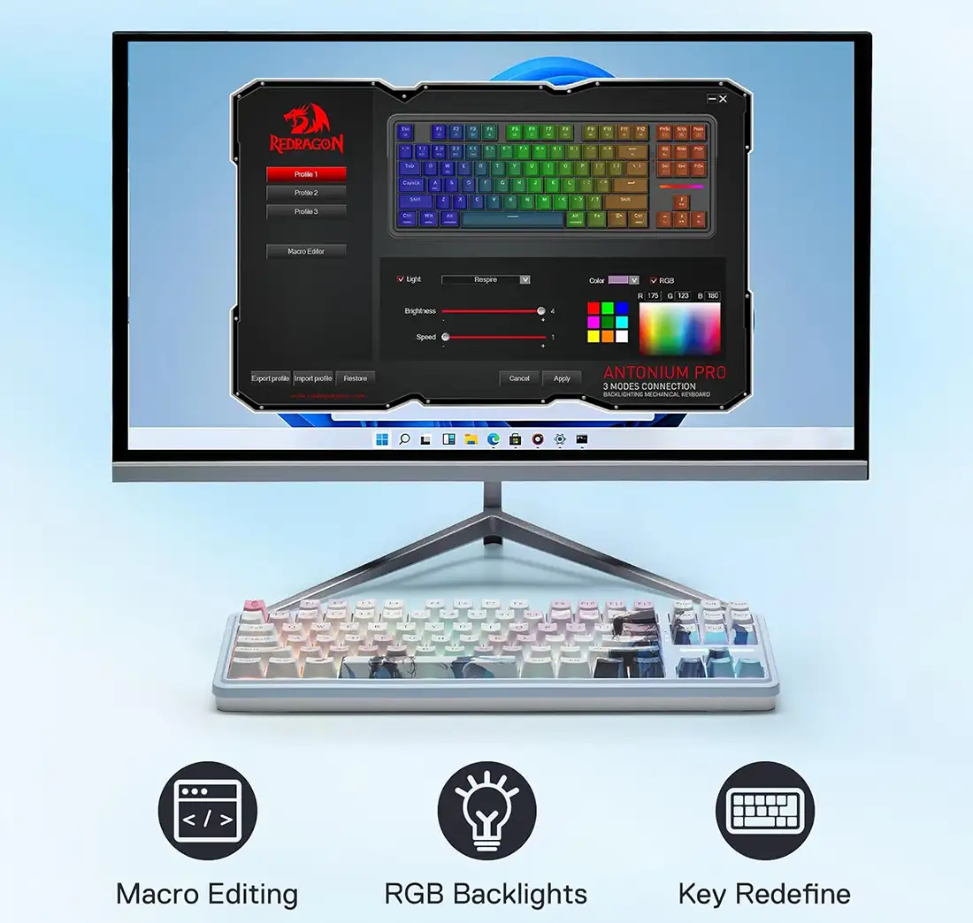 کیبورد مکانیکال بیسیم ردراگون Antonium K728 PRO AK: هنر گیمینگ در رنگ آبی انیمهای
