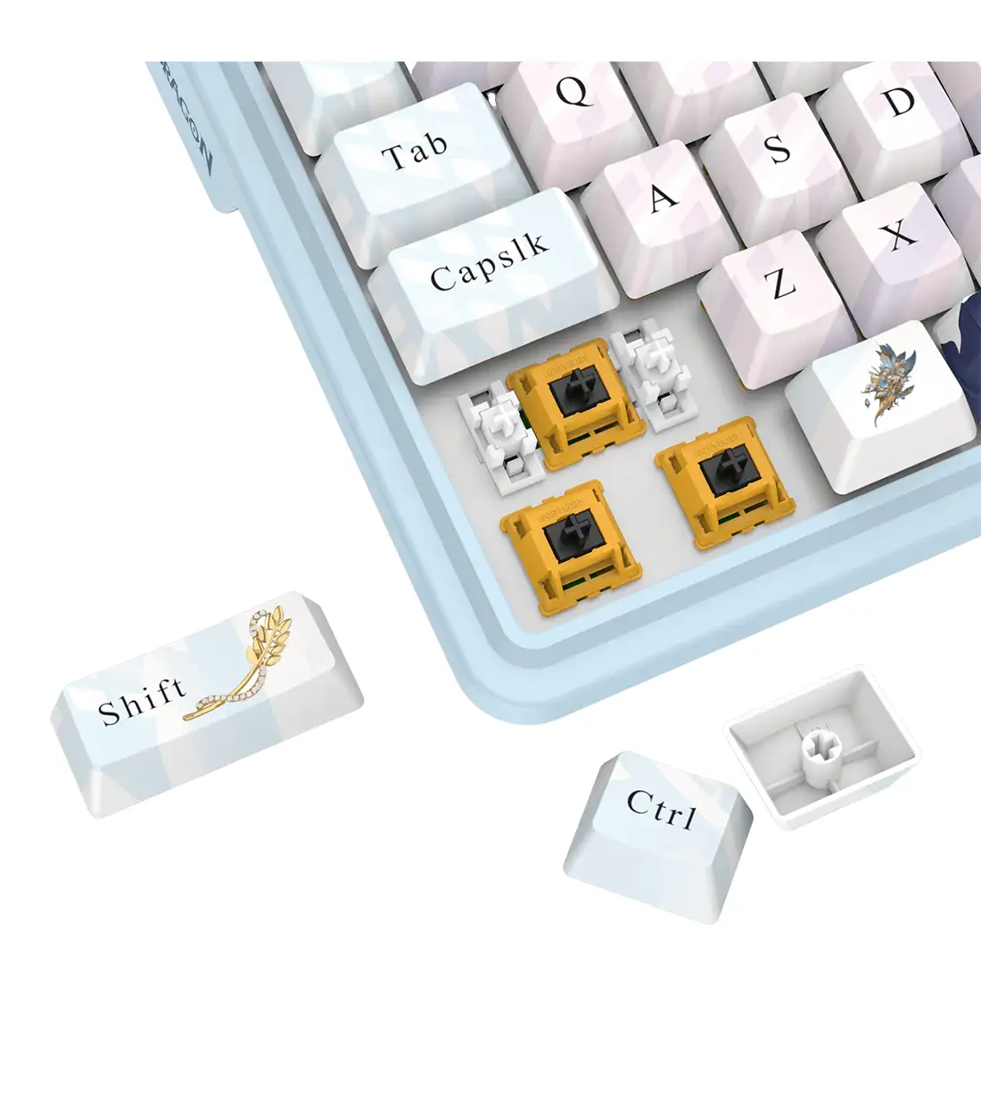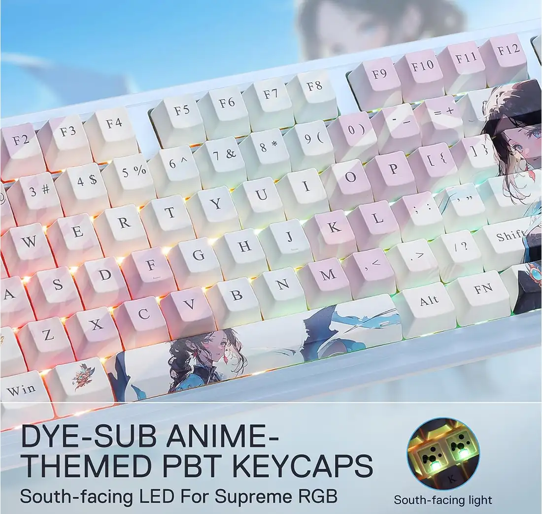یکی از خاصترین جنبههای این کیبورد، ظاهر آن است. ترکیب رنگ آبی روشن با طرحهای خاص و الهامگرفته از انیمه، جلوهای منحصر به فرد و جذاب به K728 PRO AK میبخشد. این طراحی فراتر از یک ابزار گیمینگ، به یک قطعه هنری روی میز شما تبدیل میشود. این ترکیب رنگی، به ویژه برای کسانی که به دنبال یک ستاپ گیمینگ متفاوت و بیانگر شخصیت خود هستند، یک انتخاب عالی محسوب میشود. این زیبایی بصری، به همراه نورپردازی RGB پویا، یک تجربه کاربری کامل و لذتبخش را فراهم میآورد.