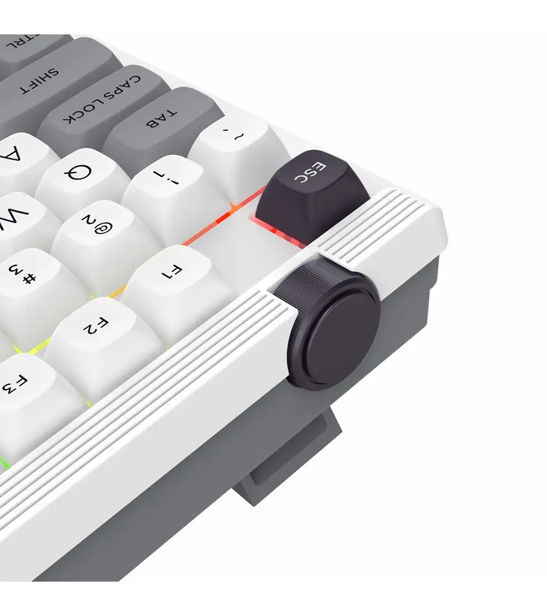 K729 PRO با یک رول کنترلر اختصاصی عرضه میشود که کاربری آن را به سطحی جدید ارتقا میدهد. این رول کنترل به صورت دوگانه برای تنظیم صدا و نورپردازی عمل میکند. کاربران میتوانند با چرخاندن این رول، میزان صدای سیستم یا شدت نورپردازی RGB کیبورد را به صورت آنالوگ و در لحظه تنظیم کنند. این قابلیت بسیار سریعتر و دقیقتر از فشردن چندین کلید Function است و به گیمر اجازه میدهد تا بدون لحظهای توقف در بازی، محیط صوتی و بصری خود را مدیریت کند. این ویژگی در کنار طراحی TKL، به بهینهسازی تجربه گیمینگ کمک شایانی میکند.