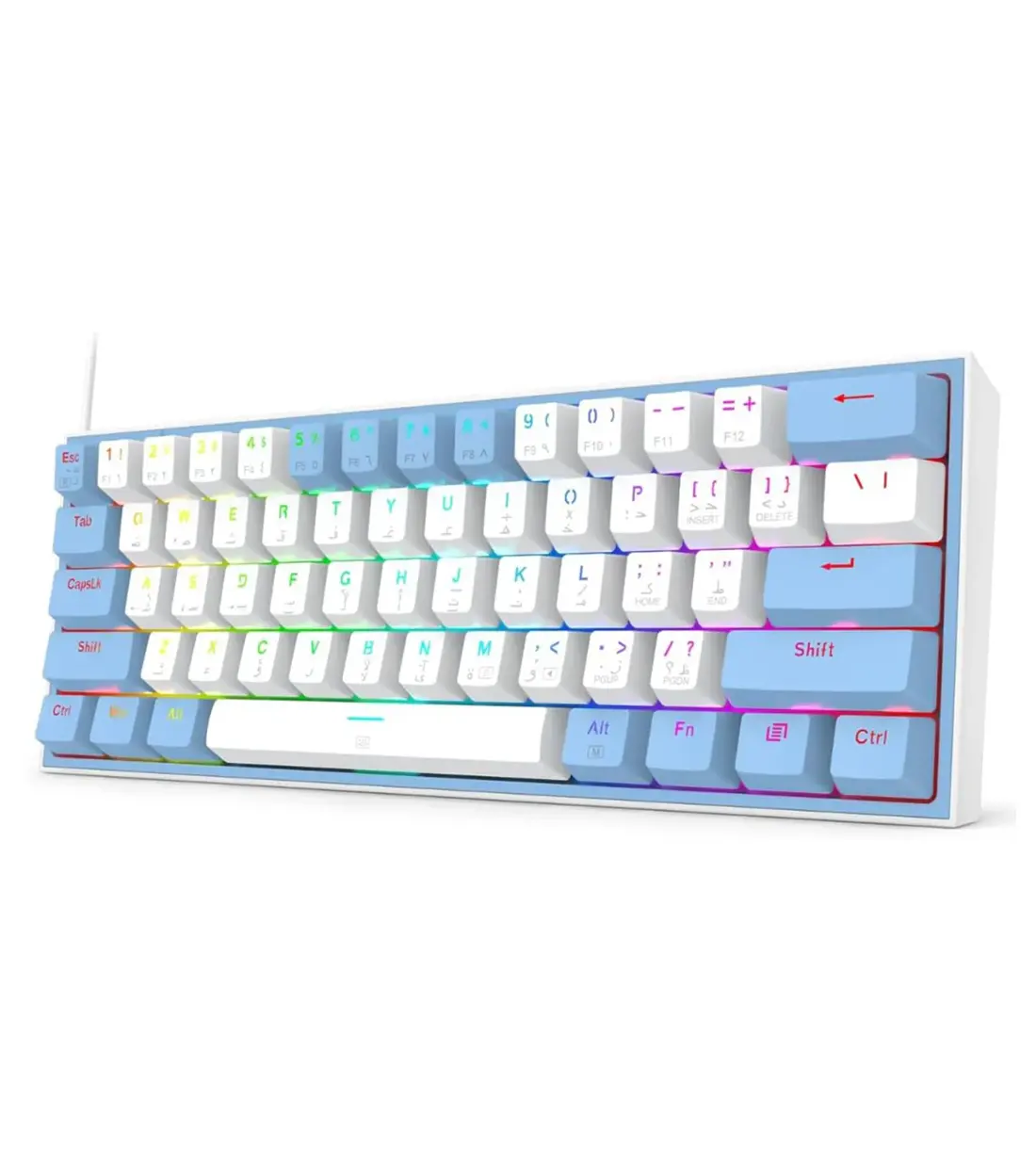 مهمترین ویژگی کیبورد Redragon K617 FIZZ، طراحی 60 درصد آن است. این طراحی به معنای حذف قسمت نامپد (Number Pad)، کلیدهای جهتنما و کلیدهای Function (F1-F12) است که باعث میشود کیبورد فوقالعاده کوچک و کمجا باشد. در دنیای گیمینگ، به خصوص در بازیهای FPS، فضای بیشتر برای حرکت آزادانه ماوس حیاتی است و این کیبورد دقیقاً همین فضا را برای شما فراهم میکند. ابعاد 292 میلیمتر عرض و 99 میلیمتر عمق، نشاندهنده جمعوجور بودن آن است. این سایز نه تنها میز شما را مرتبتر نشان میدهد، بلکه حمل و نقل کیبورد را برای مسابقات و جابجایی آسان میکند. با این حال، تمام عملکردهای حذف شده از طریق ترکیب کلیدهای Fn در دسترس هستند، بنابراین هیچ قابلیتی را از دست نمیدهید.