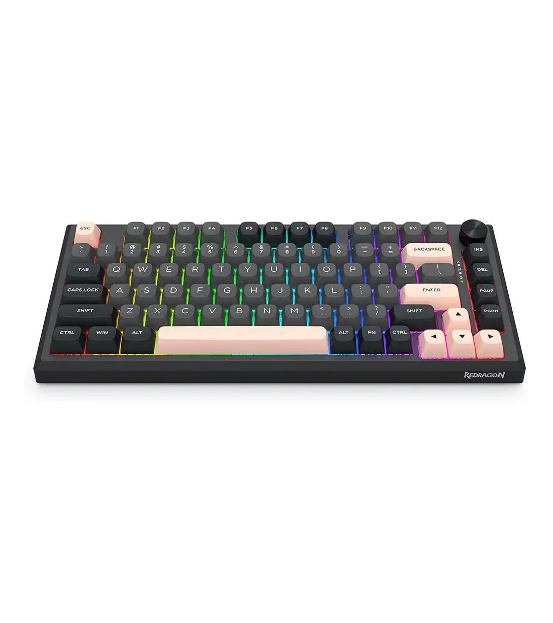 زیبایی بصری کیبورد EISA K686 SP PRO به اندازه عملکردش خیرهکننده است. با نورپردازی RGB کاملاً قابل تنظیم، شما میتوانید از میان میلیونها رنگ و دهها افکت نوری، جلوه مورد علاقه خود را انتخاب کنید تا با ستاپ گیمینگ شما هماهنگ شود. این نورپردازیها نه تنها جنبه زیبایی دارند، بلکه در محیطهای کمنور نیز دید کلیدها را بهبود میبخشند. علاوه بر این، این کیبورد مجهز به یک رُل کنترل صدا (Dedicated Control Knob) است. این ولوم چرخشی اختصاصی، دسترسی سریع و آسان به تنظیمات صدا و نورپردازی را فراهم میکند؛ کافی است بچرخانید تا صدا کم و زیاد شود یا آن را فشار دهید تا نورپردازی را تغییر دهید. این کلید چندکاره، تمرکز شما را در حین بازی حفظ میکند و نیاز به فشردن کلیدهای ترکیبی را از بین میبرد.