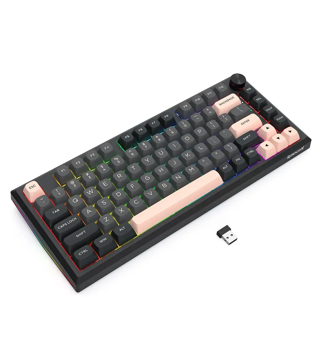 Redragon K686 SP PRO با یک طراحی تاکتیکی 98 کلیدی (96% درصد) عرضه میشود. این طراحی هوشمندانه، تقریباً تمامی کلیدهای یک کیبورد فولسایز (100% درصد) شامل نامپد (Num-Pad)، کلیدهای جهتنما و کلیدهای عملکردی را در خود جای داده است، اما با فشردگی بیشتر. نتیجه؟ شما تمام قابلیتهای لازم برای کار و بازی را دارید، اما حدود 20% فضای کمتری روی میز اشغال میشود. اگرچه این مدل فاقد صفحه استراحت مچ است، اما طراحی ارگونومیک بدنه به گونهای است که فشار وارده بر مچ دست در طول جلسات طولانی گیمینگ به حداقل برسد. این ترکیب اندازه و قابلیتها، K686 SP PRO را به یک ابزار متعادل برای گیمرها و متخصصانی تبدیل میکند که به عدد و رقم زیاد سر و کار دارند.