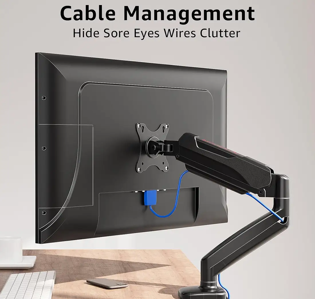 یکی از بزرگترین مشکلات میزهای کار، شلوغی کابلها است. پایه GMK914 با داشتن سیستم مدیریت کابل (Cable Management) داخلی این مشکل را حل میکند. کابلهای مانیتور از طریق کانالهای تعبیه شده در داخل بازو هدایت میشوند و به طور کامل از دید پنهان میمانند. این ویژگی نه تنها ظاهری تمیز و مدرن به میز شما میبخشد، بلکه از درهم تنیدگی و آسیب دیدن کابلها جلوگیری میکند. یک میز کار سازمان یافته، یک ویژگی کاربر پسند است که به افزایش تمرکز کمک میکند.