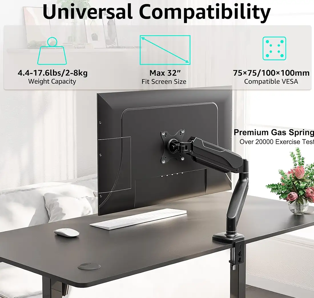 پایه GMK914 برای ارائه حداکثر سازگاری طراحی شده است. این محصول به راحتی از مانیتورهای کوچک 13 اینچ تا مانیتورهای بزرگ 32 اینچ پشتیبانی میکند. نکته حیاتی، ظرفیت تحمل وزن بین 2 تا 8 کیلوگرم است. این بازه گسترده، آن را برای استفاده با مانیتورهای سبک و همچنین مانیتورهای گیمینگ سنگین و عریض (در محدوده وزنی تعیین شده) ایدهآل میسازد. استاندارد نصب VESA رایج نیز تضمین میکند که مانیتور شما بدون مشکل روی این پایه نصب شود.