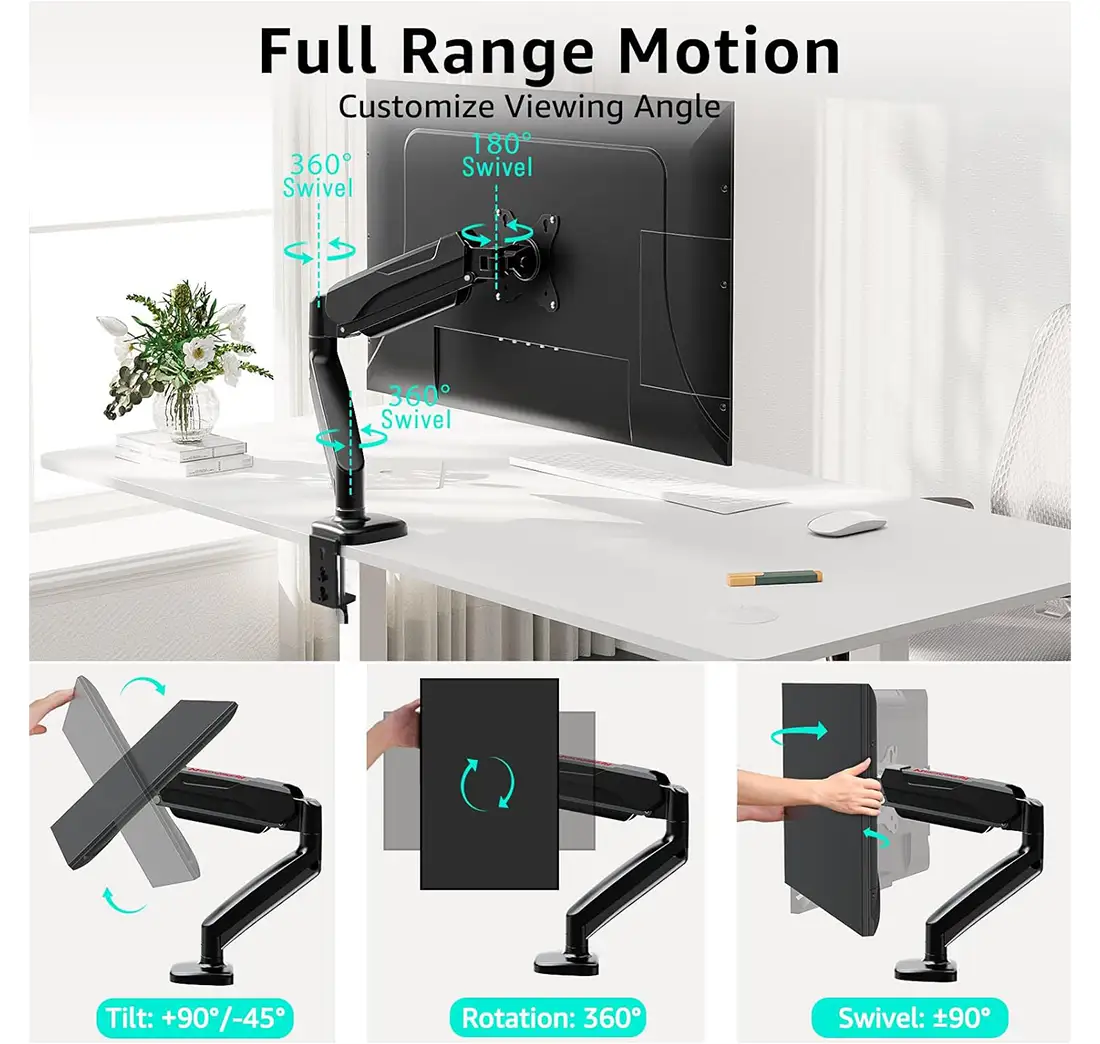 برای حرفهایها و گیمرها، داشتن کنترل کامل بر زاویه مانیتور یک ضرورت است. Redragon GMK914 قابلیتهای حرکتی کامل را ارائه میدهد: