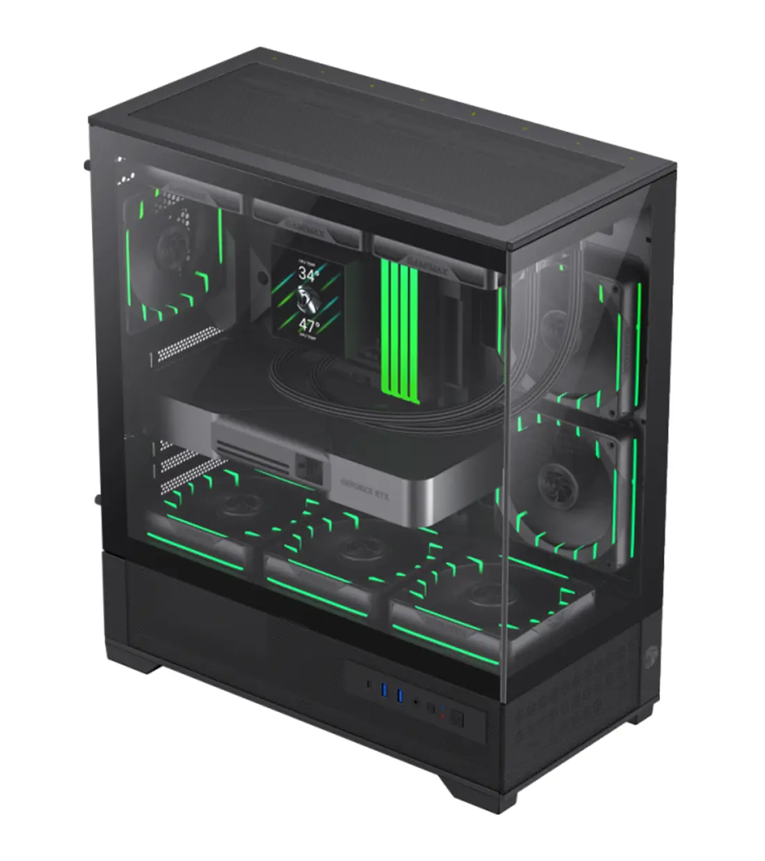 جذابیت بصری یک سیستم گیمینگ به اندازه عملکرد آن مهم است. کیس VISTA 2 AB با نورپردازی ARGB و 3 عدد فن Tornado-T12 که نورپردازی قابل آدرسدهی دارند، ظاهری خیرهکننده ایجاد میکند. وجود کنترلر نورپردازی فن به کاربران اجازه میدهد تا با استفاده از دکمههای کنترلی، افکتها و رنگهای دلخواه خود را تنظیم کرده و با سایر قطعات ARGB در سیستم هماهنگ کنند. این قابلیت شخصیسازی، کیس گیم مکس VISTA 2 AB را به انتخابی عالی برای کسانی تبدیل میکند که به دنبال یک کیس با استایل نورپردازی منحصر به فرد هستند.