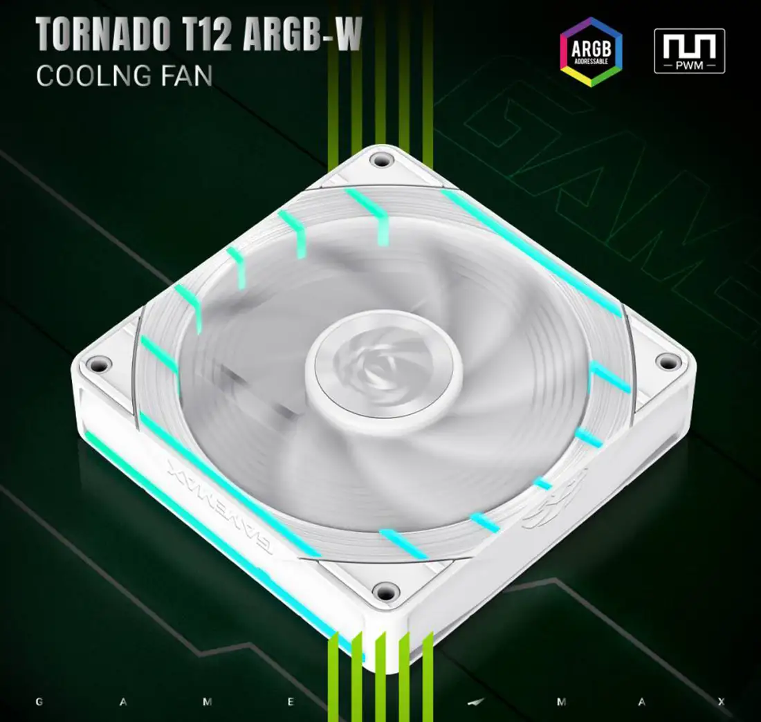 فن کیس گیم مکس Tornado T12 ARGB White با گارانتی تخت جمشید ارائه میشود.