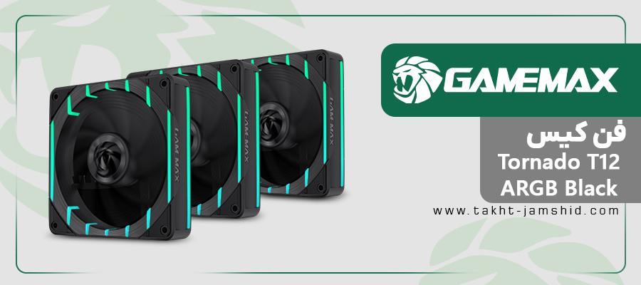 فن کیس گیم مکس Tornado T12 ARGB Black با گارانتی تخت جمشید ارائه میشود.