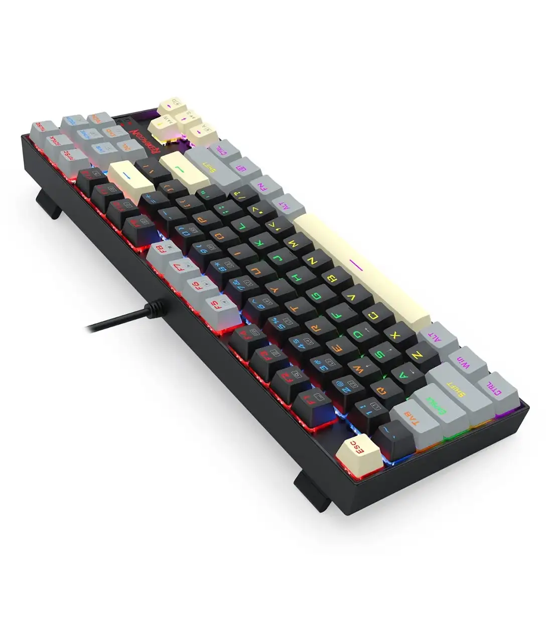 یکی از ویژگیهای بارز این کالا، طراحی فشرده یا اصطلاحاً Tenkeyless است. حذف بخش اعداد در سمت راست باعث شده تا 87 کلید اصلی در فضایی بهینهتر قرار بگیرند. این موضوع برای گیمرها اهمیت حیاتی دارد؛ چرا که فضای بیشتری را برای حرکت آزادانه ماوس فراهم میکند و اجازه میدهد دستها در موقعیت ارگونومیکتری قرار بگیرند. بدنه این محصول از مواد اولیه بسیار باکیفیت ساخته شده است که در برابر ضربات ناگهانی و فشارهای شدید حین بازی، مقاومت بالایی نشان میدهد. استفاده از ترکیب رنگهای توسی و کرم در برخی نسخهها، حسی نوستالژیک و در عین حال حرفهای به این محصول بخشیده است که آن را از مدلهای مشابه بازار متمایز میکند.
