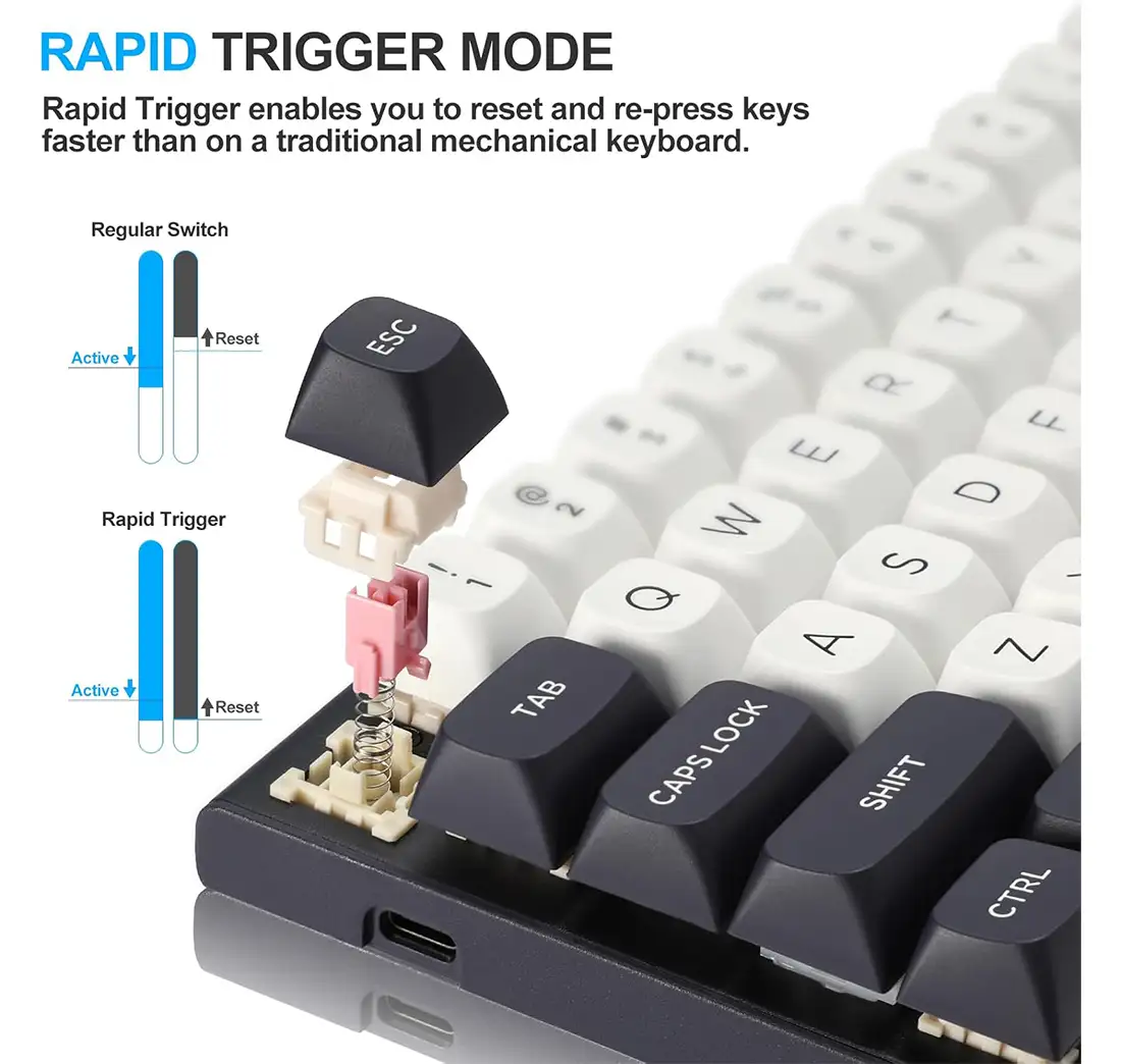 در میدان نبرد بازیهای آنلاین، حتی یک میلیثانیه هم اهمیت دارد. کیبورد K712 با نرخ بازیابی (Polling Rate) معادل 8000 Hz، اطلاعات را 8 برابر سریعتر از کیبوردهای گیمینگ استاندارد به کامپیوتر منتقل میکند. این به معنای زمان پاسخگویی 0.125 میلیثانیه است که عملاً هرگونه لگ یا تاخیر ورودی را حذف میکند. زمانی که شما یک کلید را فشار میدهید، فرمان شما بلافاصله در بازی اجرا میشود. این ویژگی برای گیمرهای سبک شوتر اولشخص (FPS) و بازیهای ریتمیک که نیاز به زمانبندی دقیق دارند، یک مزیت رقابتی مطلق محسوب میشود.