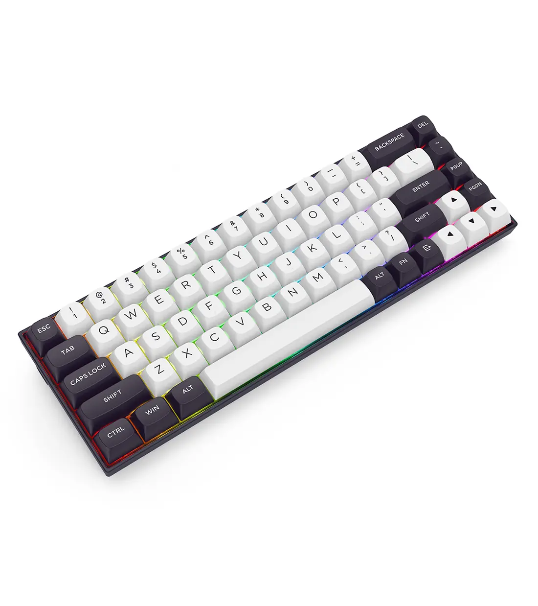 طراحی 60% در کیبورد K712 RGB-M به معنای حذف بخشهای غیرضروری مانند نامپد و کلیدهای تابع (F-Keys) برای دستیابی به حداکثر فضای میز است. با این حال، ردراگون با هوشمندی تمام، 68 کلید را در این بدنه جای داده تا کلیدهای جهتدار (Arrow Keys) که برای بسیاری از کاربران حیاتی هستند، حفظ شوند. این ابعاد کوچک به شما اجازه میدهد موس خود را با آزادی عمل بسیار بیشتری حرکت دهید که برای تنظیم حساسیتهای پایین (Low DPI) در بازی بسیار عالی است. همچنین، ترکیب رنگ سفید و مشکی (Panda Style) جلوهای مدرن و لوکس به این کیبورد بخشیده که به راحتی با هر ستاپی ست میشود.