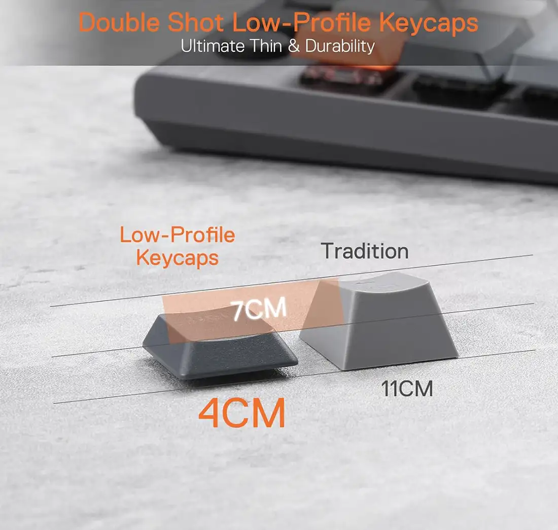 طراحی 65% در کیبورد K609 GG Pro به معنای حذف کلیدهای غیرضروری و تمرکز بر سرعت است. با وجود 84 کلید، این کیبورد فضای بسیار کمی از میز شما را اشغال میکند و به موس اجازه میدهد تا در بازیهای رقابتی و شوتر، دامنه حرکتی وسیعتری داشته باشد. ترکیب رنگی طوسی و نارنجی نه تنها ظاهری مدرن و متمایز به آن بخشیده، بلکه باعث شده تا کلیدهای عملیاتی به راحتی از یکدیگر تفکیک شوند. بدنه مستحکم این کیبورد علیرغم وزن سبک، ثبات بالایی روی میز دارد و در برابر فشارهای ناشی از هیجان بازی، مقاومت تحسینبرانگیزی از خود نشان میدهد.